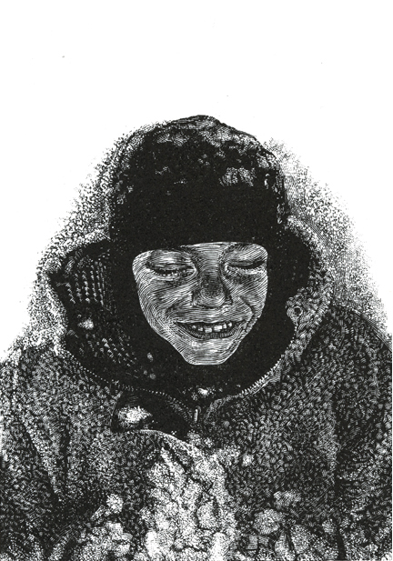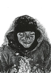 This wood-engraving print by Michael McGarvey “Joe Snow” is limited to an edition of 111 signed and numbered prints, printed on Mohawk Superfine Paper.